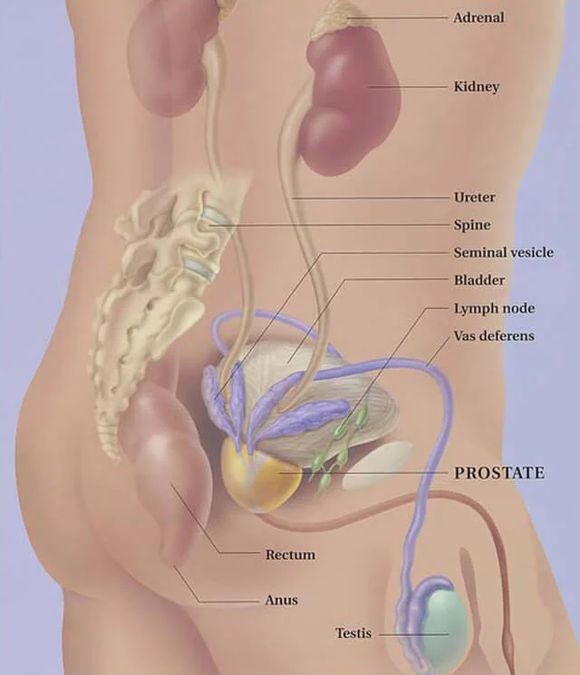 A small gland about the size of a walnut, located below the bladder. It produces some of the sperm-carrying fluid for the semen.